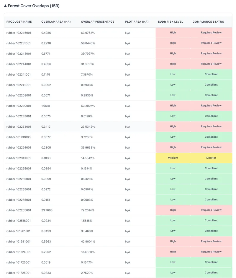 Tatwin needed to verify 300+ rubber plots against EUDR requirements before shipping to EU buyers. Manual cross-referencing against deforestation data would take weeks.